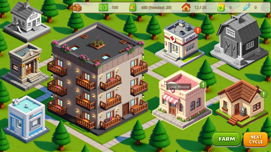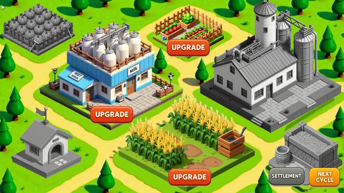 A farm simulator game, there you breed livestock, collect crops and pay mortgage. I think the game turned out pretty fun!